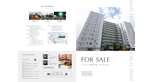 - インターネット上での不動産サイトを活用した集客だけでなく、チラシ(A3・当物件のみ掲載)を制作し、新聞折込やポスティングなど、インターネットユーザー以外へも余すことなく情報をお届けします。