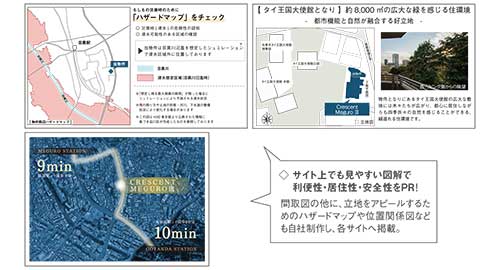 - 利便性・安全性なども図版でPR。弊社専任スタッフが情報を分かりやすくお伝えする図版を制作します。