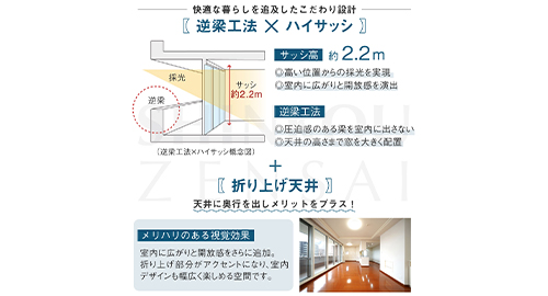 実際に制作した図解の一部(逆梁施工・ハイサッシ・折り上げ天井)