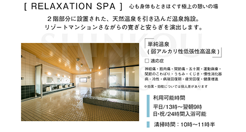 - 本物件の温泉施設を魅力ポイントとしアピールするために、施設の詳細を記載した図解を作成し各不動産サイトへ掲載。競合物件との違いを魅せ、より暮らしのイメージが膨らむ豊富な情報でアピールします。
