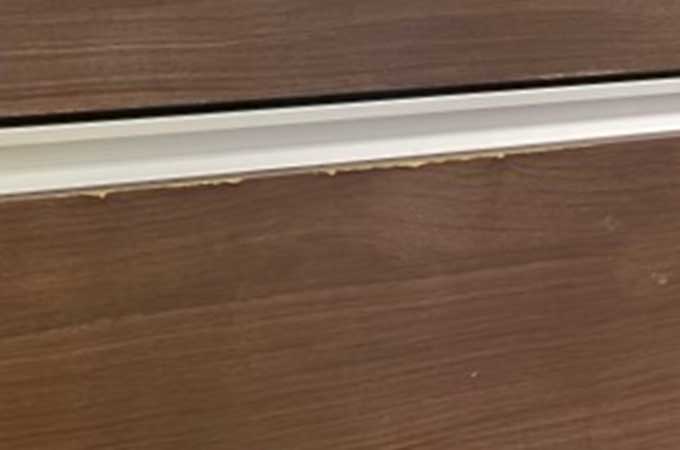 目につくキッチン面材の剥がれ