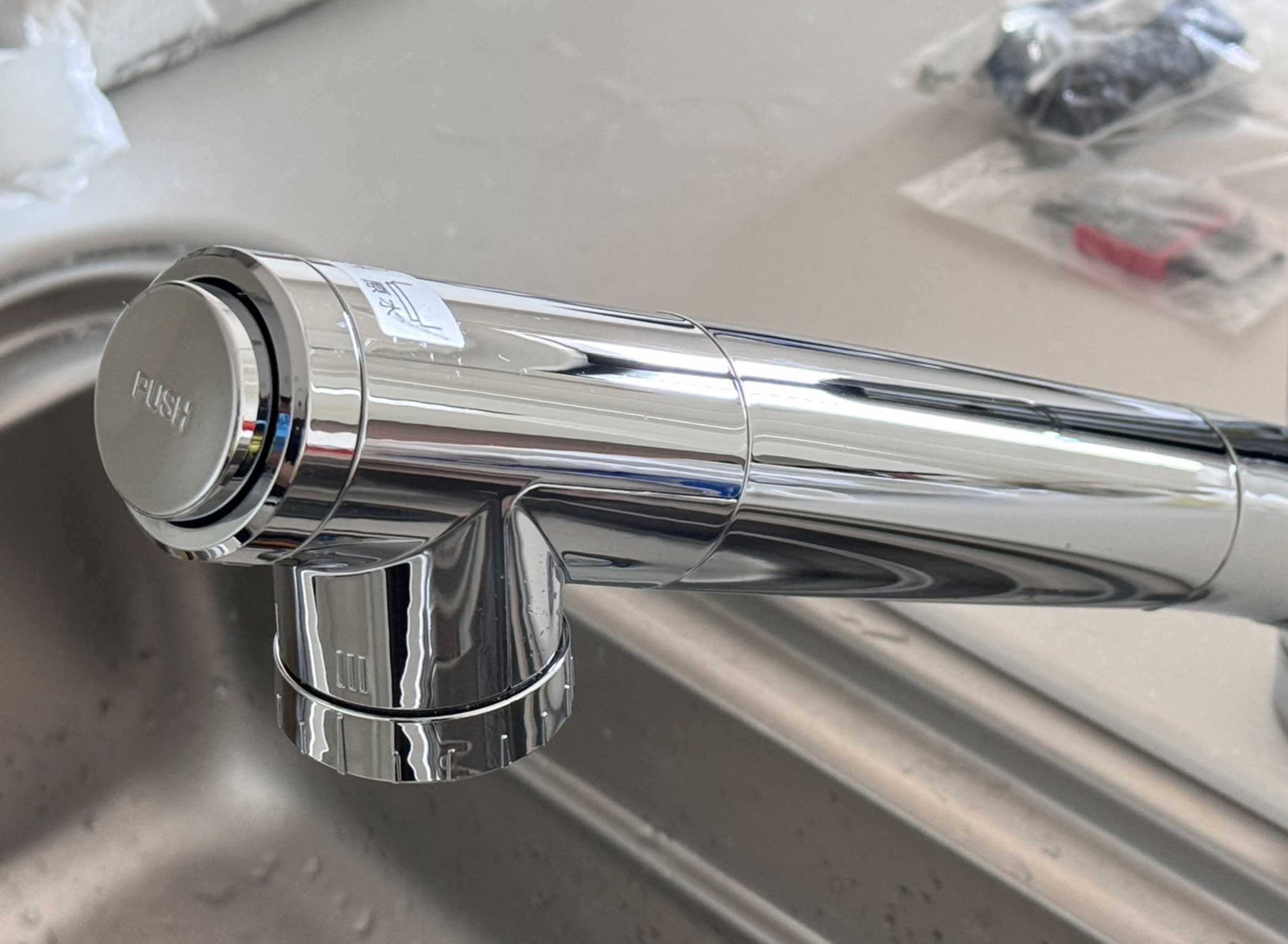キッチンの水栓から水漏れを発見、弊社サービスとして水栓の取り替えを実施いたしました。