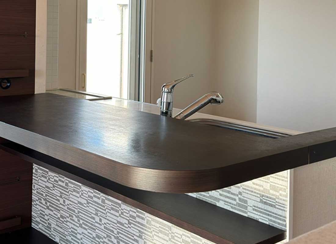 キッチン天板の色むらもピカピカに磨き上げてお引渡しいたしました。