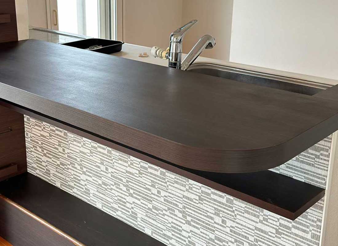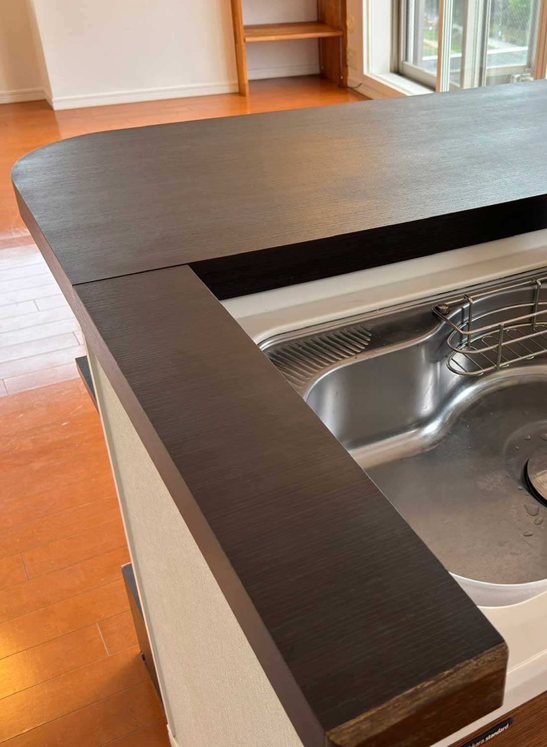 キッチン天板もピカピカに!木目も輝いて見えます!