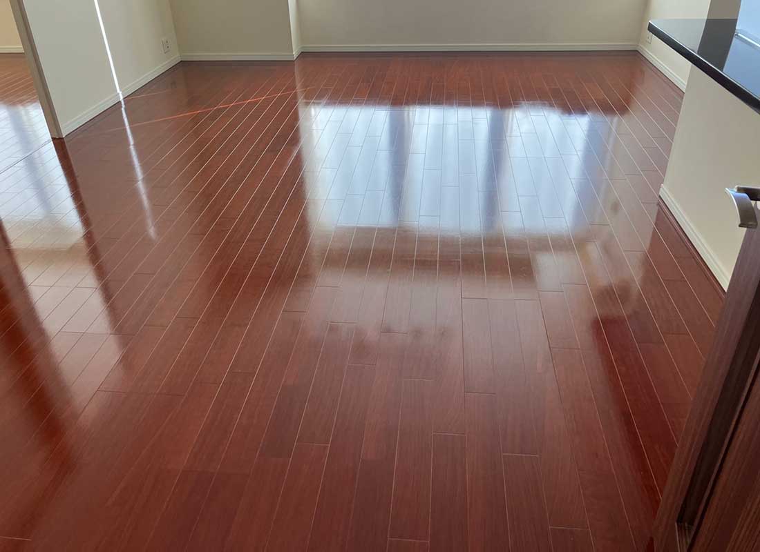 フローリングに傷をつけないよう細心の注意を払いながら、フローリングを磨き上げました。