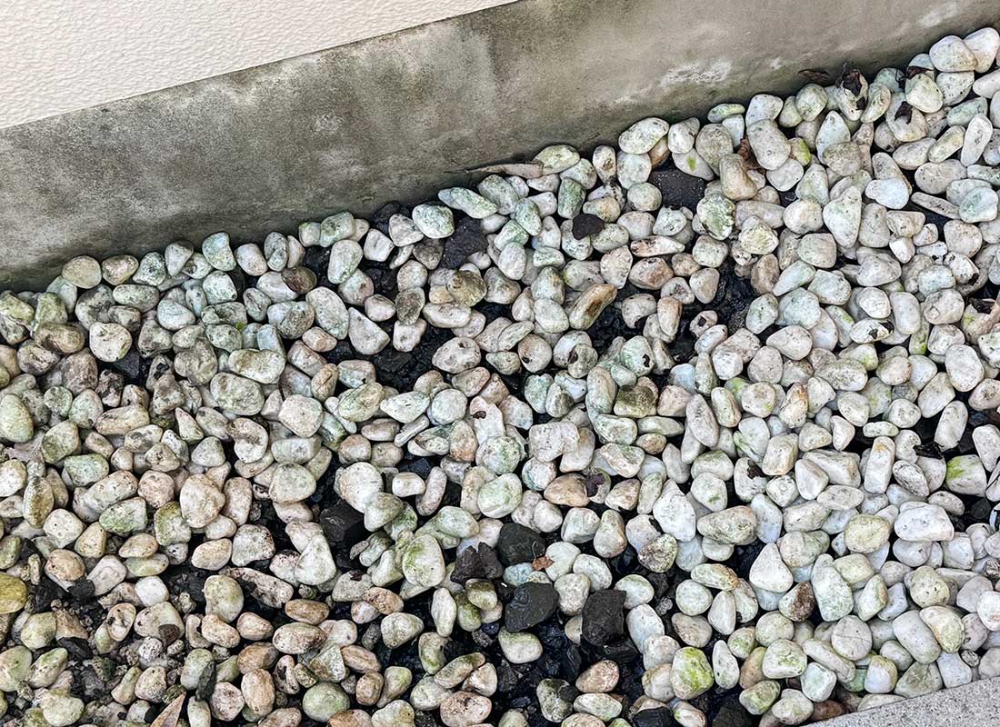 せっかくの白玉砂利が、泥・苔などで汚れを纏い黒ずんでいました。