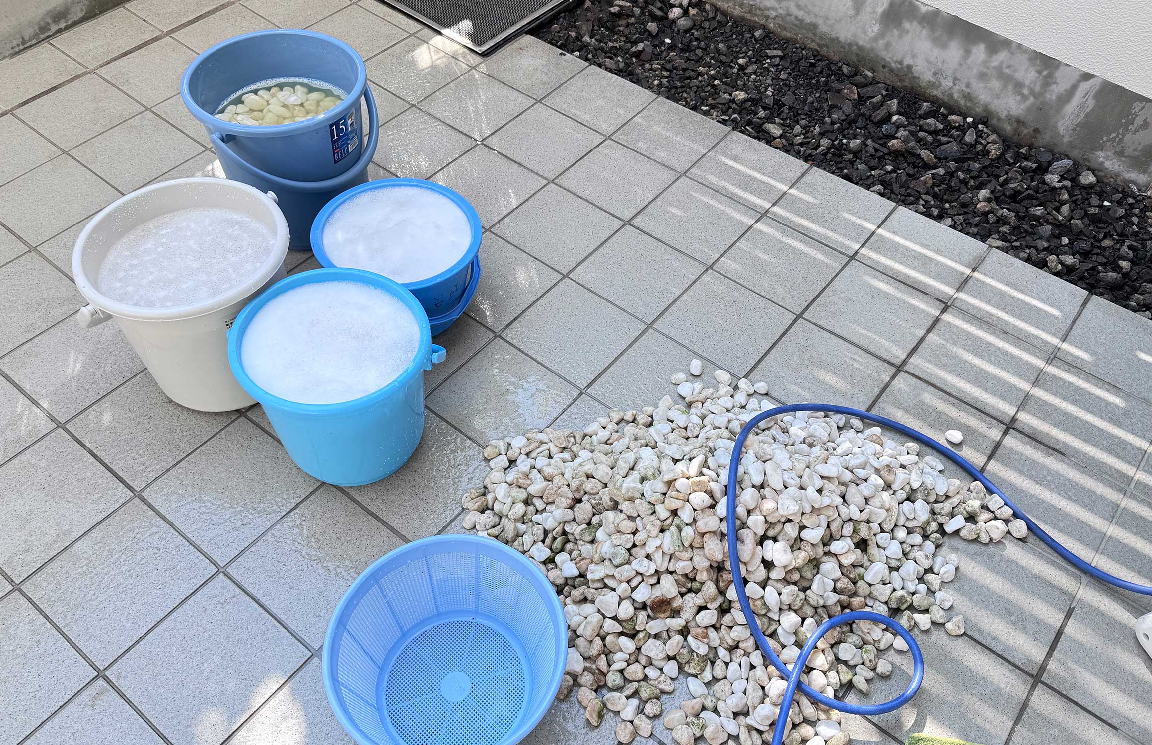 砂利を徹底洗浄することで見違えるように綺麗に!