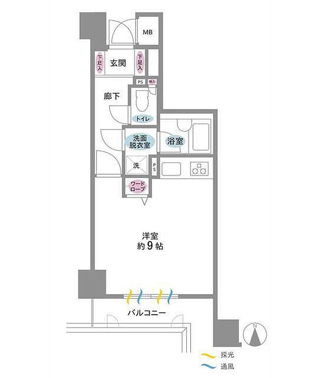 - 分譲賃貸物件、3階・南向きワンルームのお部屋