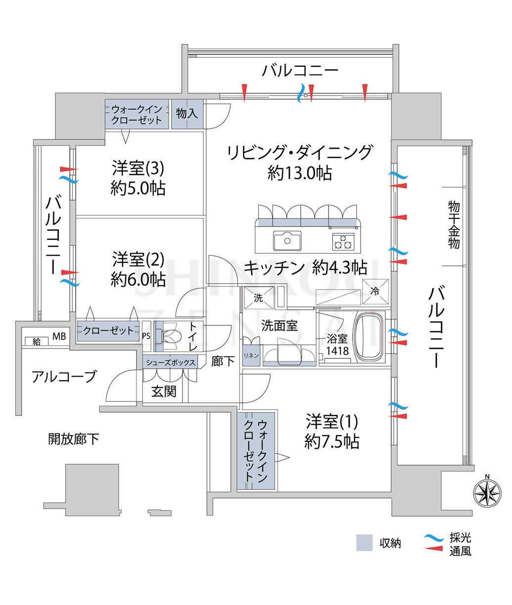 - 3面バルコニー