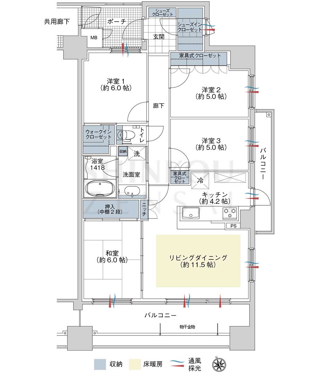 | 使用部分面積 | 壁芯88.14㎡ バルコニー19.29m² |
