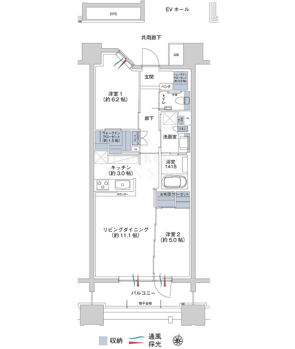 | 間取内訳 | 2LDK(洋 6.2・5 LDK 14.1) |