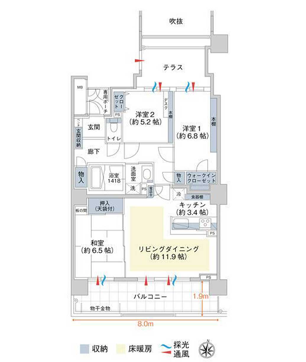 | 間取内訳 | 3LDK(和 6.5 洋 6.8・5.2 LDK 15.3) |