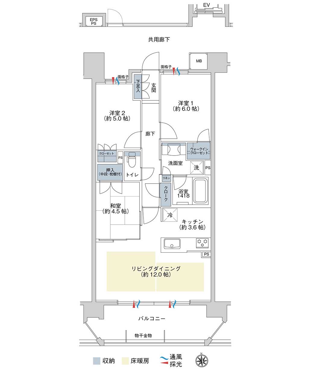 | 間取内訳 | 3LDK(和 4.5帖 洋 6.0帖・5.0帖 LDK 15.6帖) |