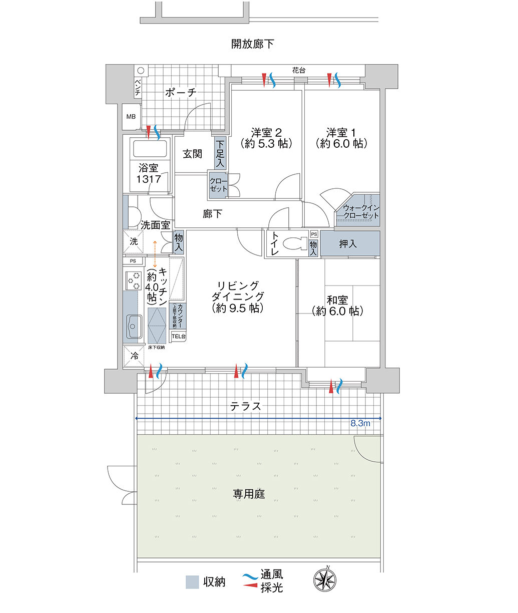 | バルコニー面積 | ― テラス:15.80㎡ 専用庭:約31m² |