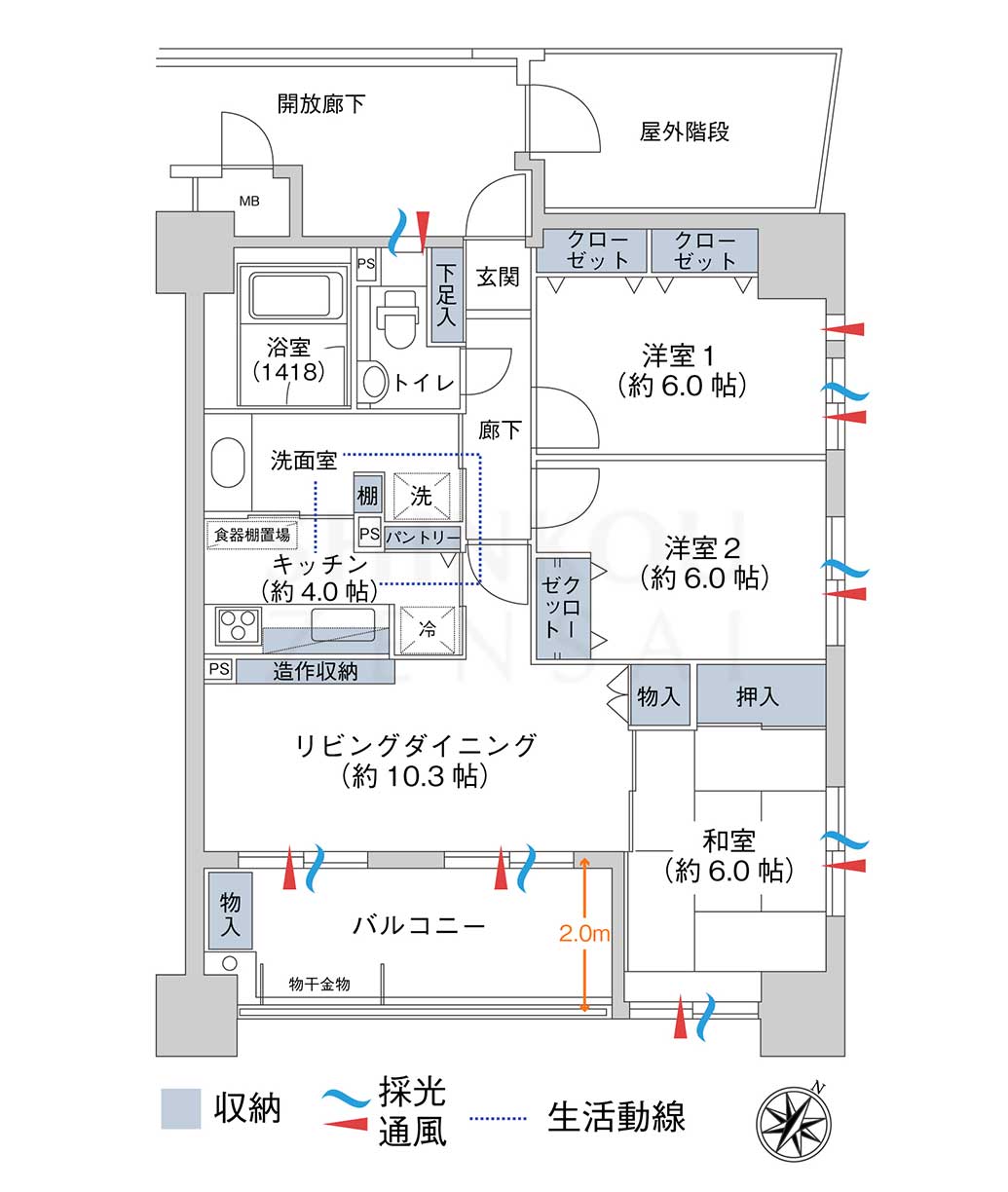 | 間取内訳 | 3LDK(和 6 洋 6・6 LDK 14.3) |