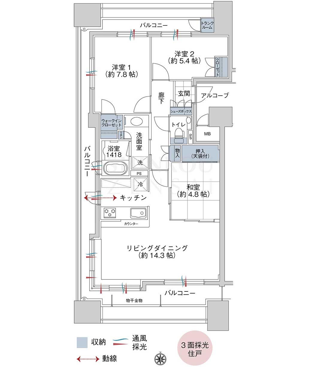 | 間取内訳 | 3LDK(和 5 洋 7.8・5.4 LDK 17.3) |