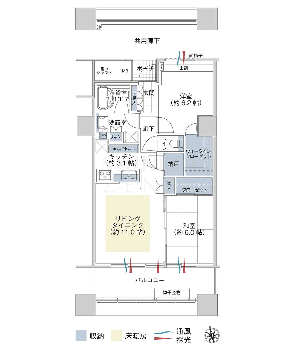 - 南面リビングダイニングに床暖房敷設、常時ゴミ出し可能など居住性良好です