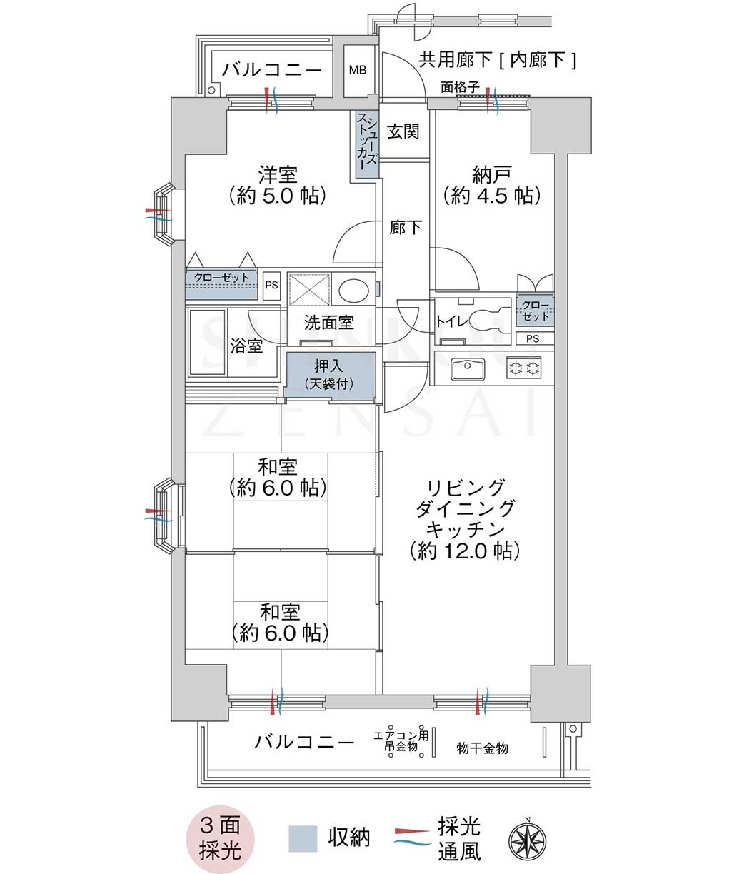 | 間取内訳 | 3SLDK(和 6・6 洋 5 LDK 12 S 4.5) |