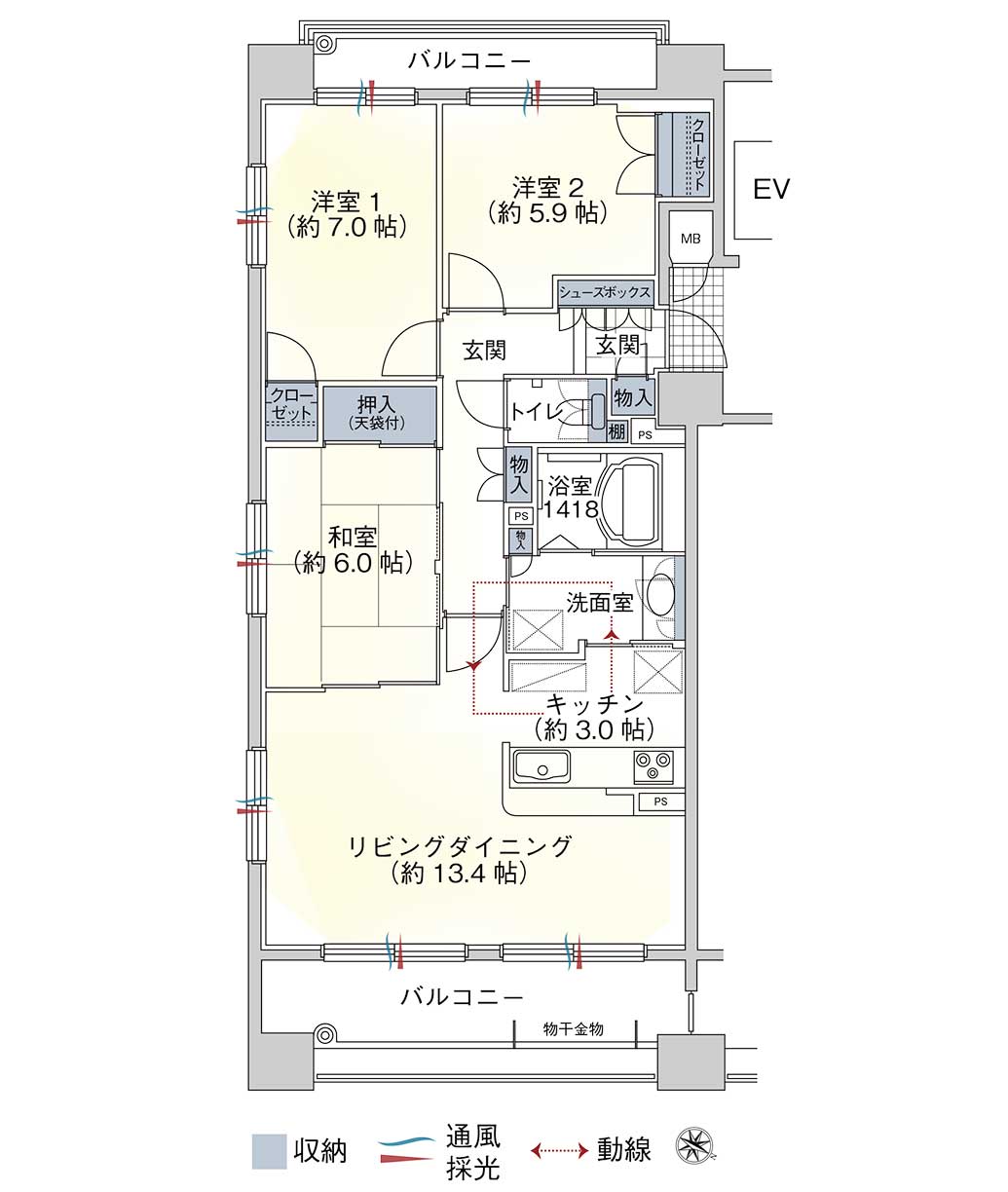 | 間取内訳 | 3LDK|和 6.0 洋 7.0・5.9 LDK 16.4 |