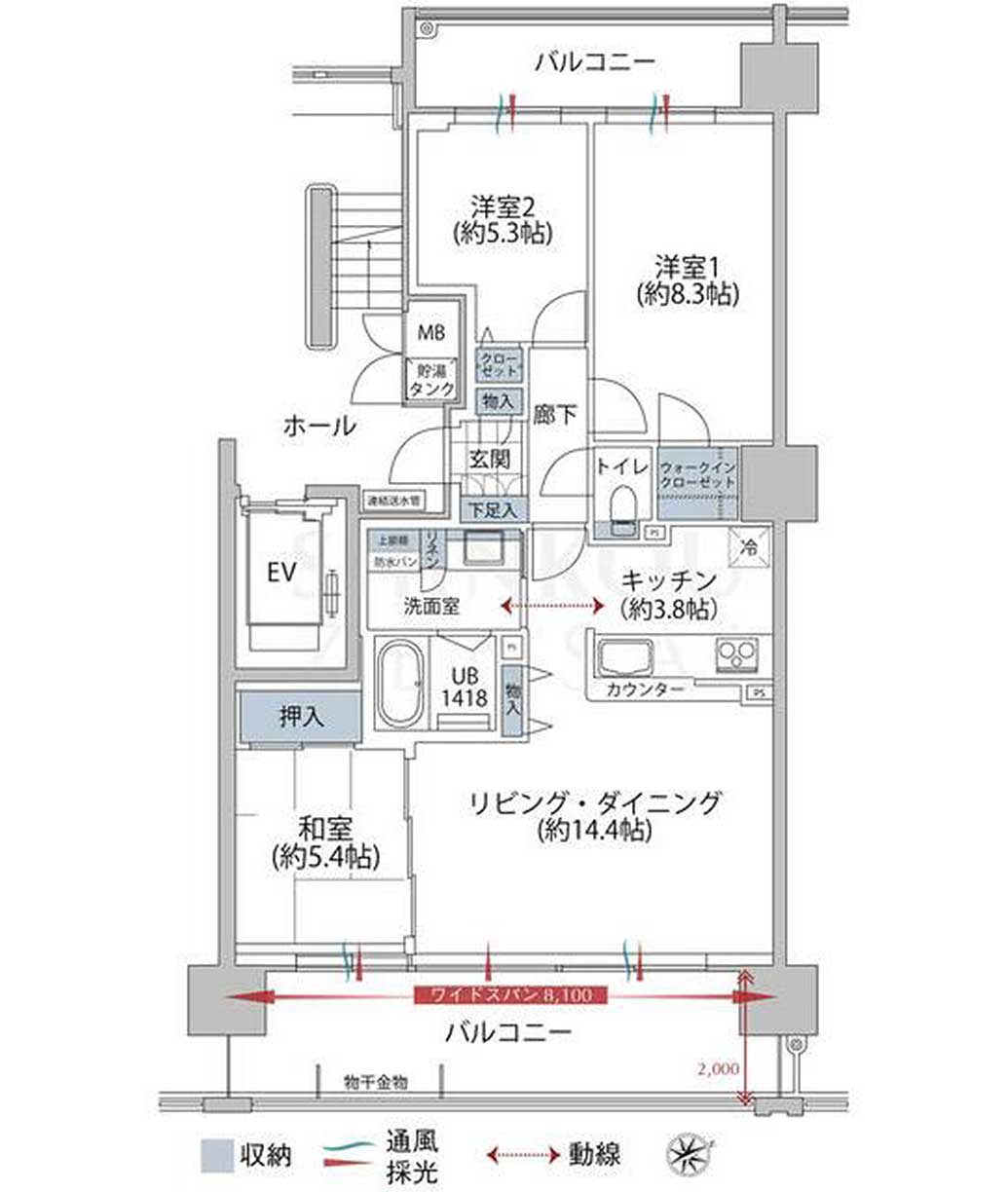 | 間取内訳 | 3LDK(和 5.4 洋 8.3・5.3 LDK 18.2) |