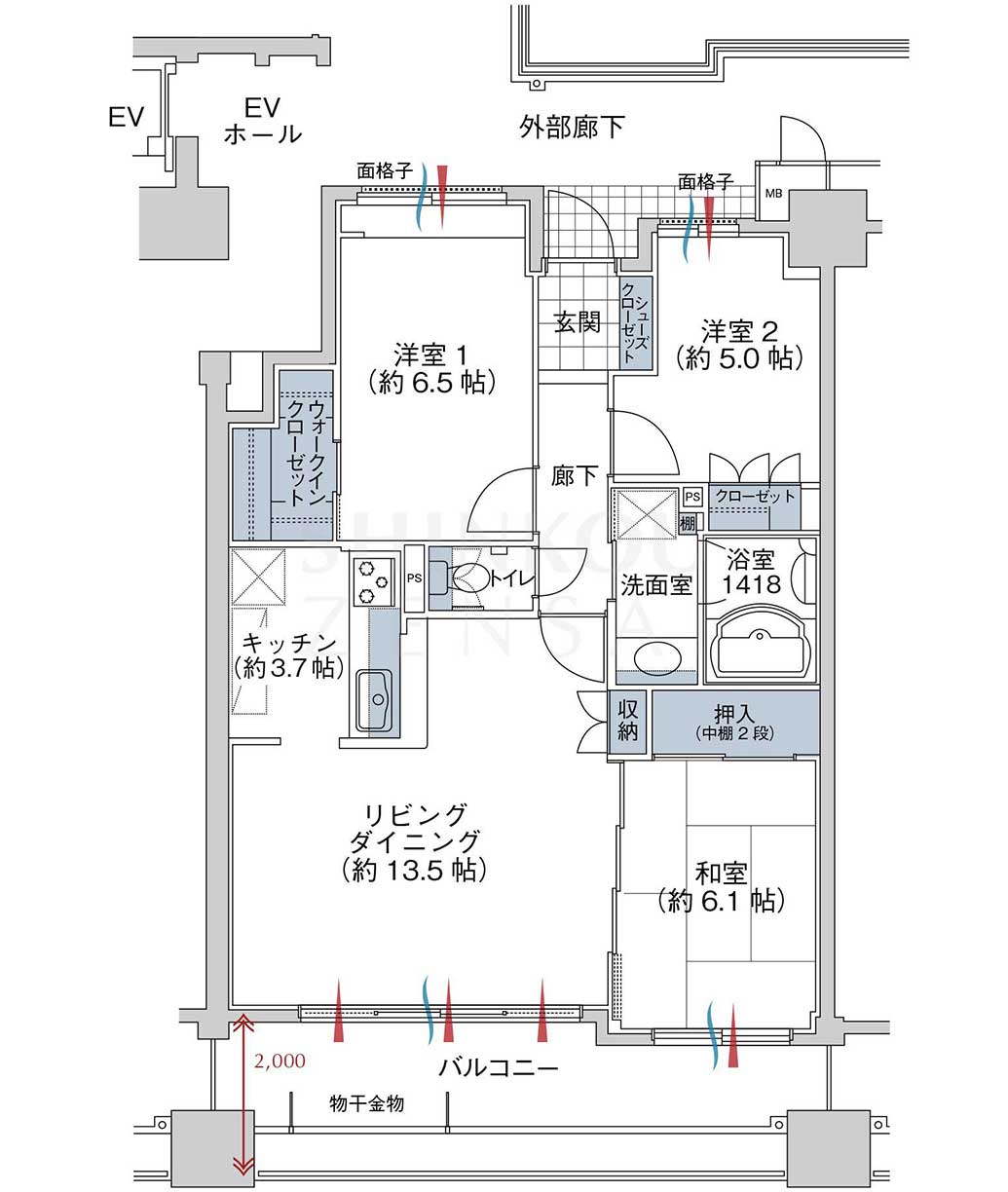 | 間取内訳 | 3LDK(和 6.1 洋 6.5・5 LDK 17.2) |