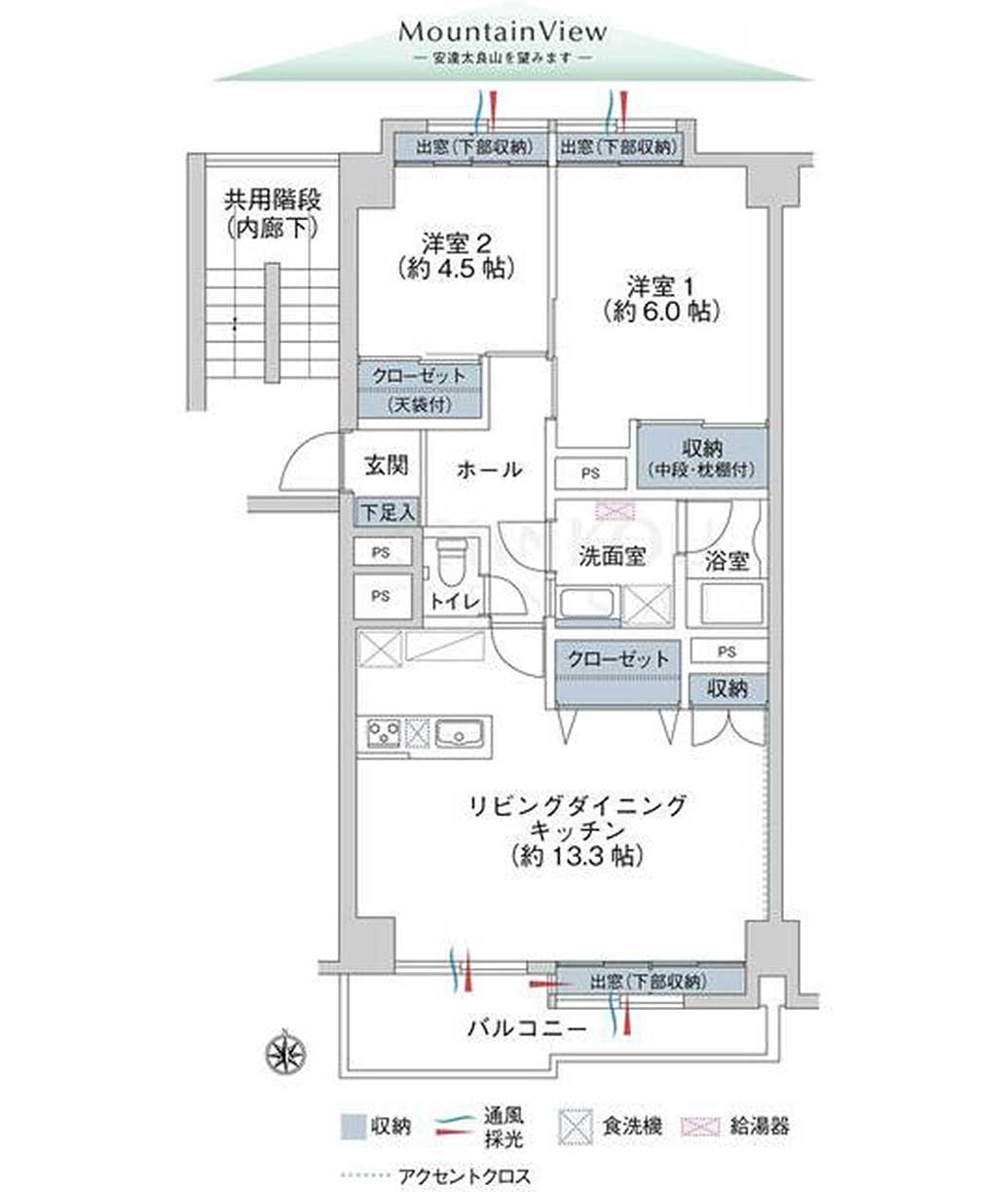 | 間取内訳 | 2LDK(洋 6・4.5 LDK 13.3) |