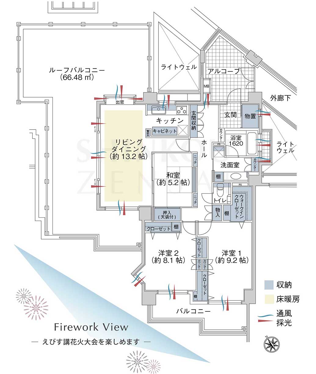 - バルコニーとルーフバルコニーから「えびす講花火」をご鑑賞いただけます