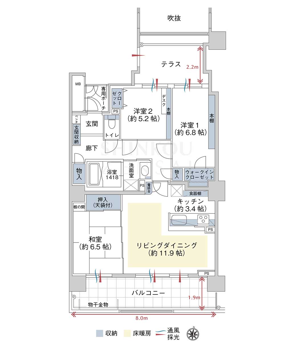 | 間取内訳 | 3LDK(和 6.5 洋 6.8・5.2 LDK 15.3) |