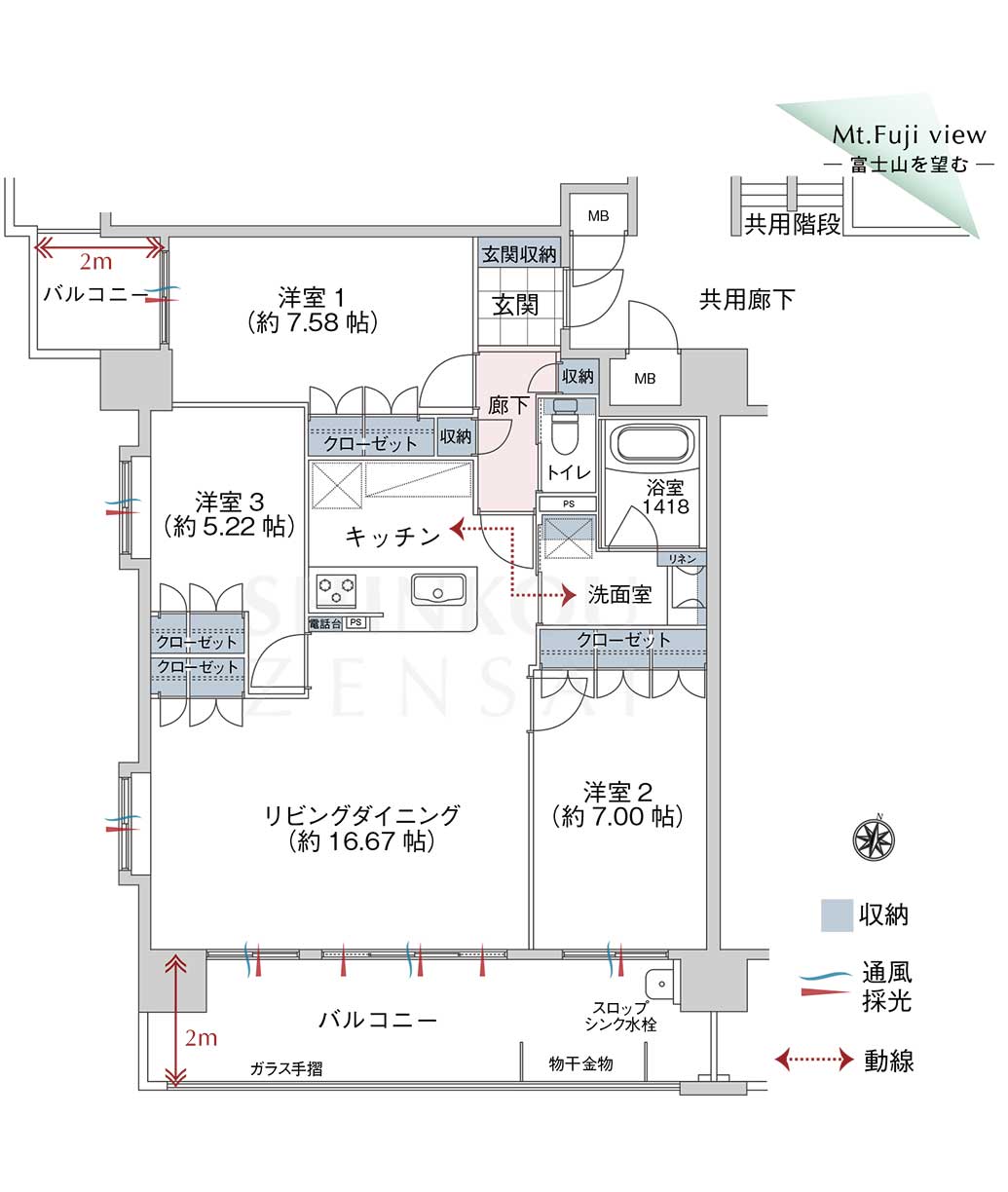- 松岡×富士川スマートICから車で4分、2面バルコニー付の南向き3LDK