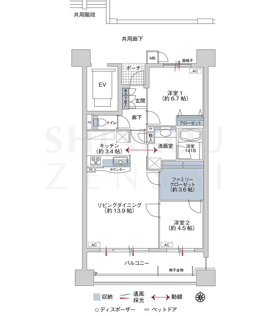- 約3.6帖の大容量収納が叶うファミリークローゼットを完備