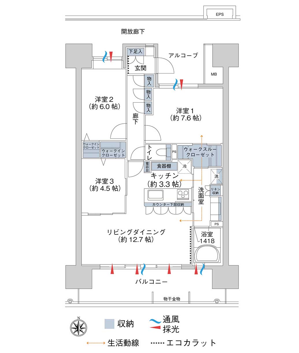 | 間取内訳 | 3LDK(洋 7.6・6・4.5 LDK 16) |