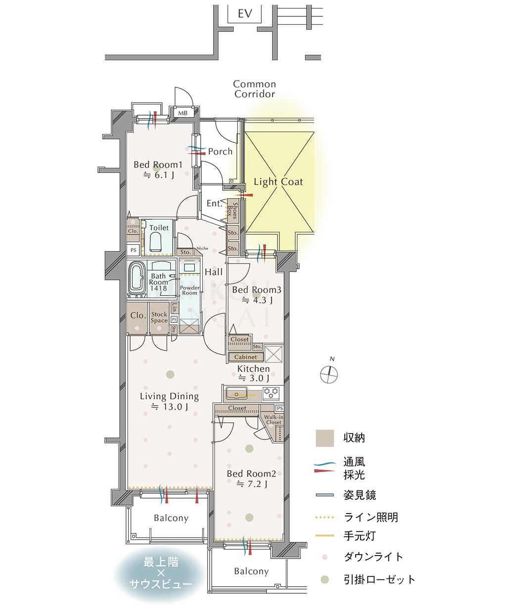 | 間取内訳 | 3LDK/洋 7.2・6.1・・4.3 LDK 16.0 |