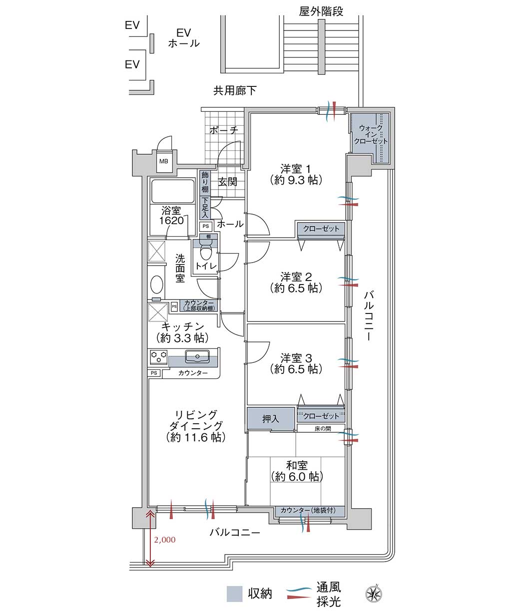 | 間取内訳 | 4LDK|和 6.0 洋 9.3・6.5・6.5 LDK 14.9 |