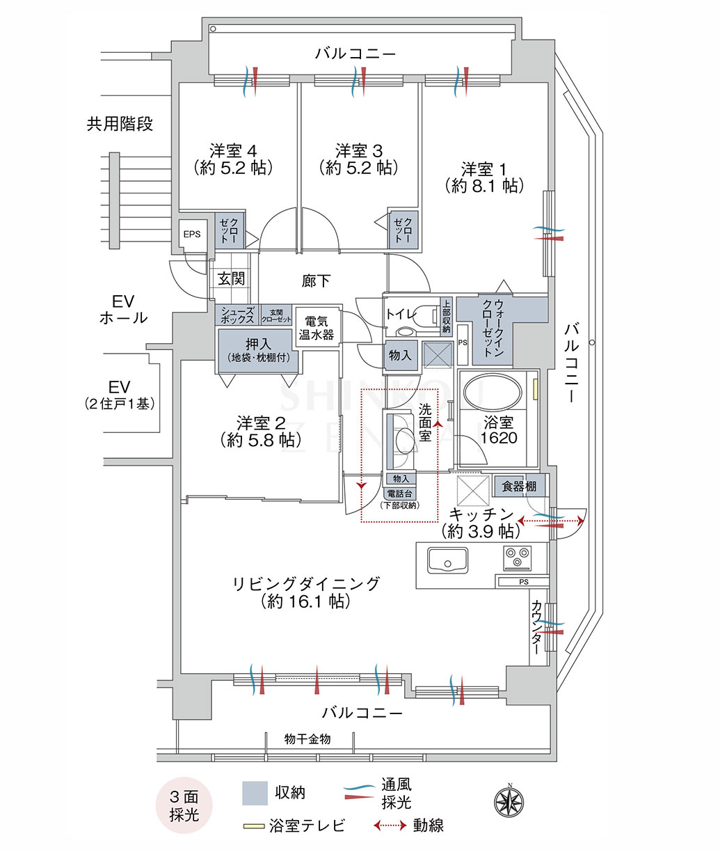 | 間取内訳 | 4LDK|洋 8.1・5.8・5.2・5.2 LDK 20.0 |