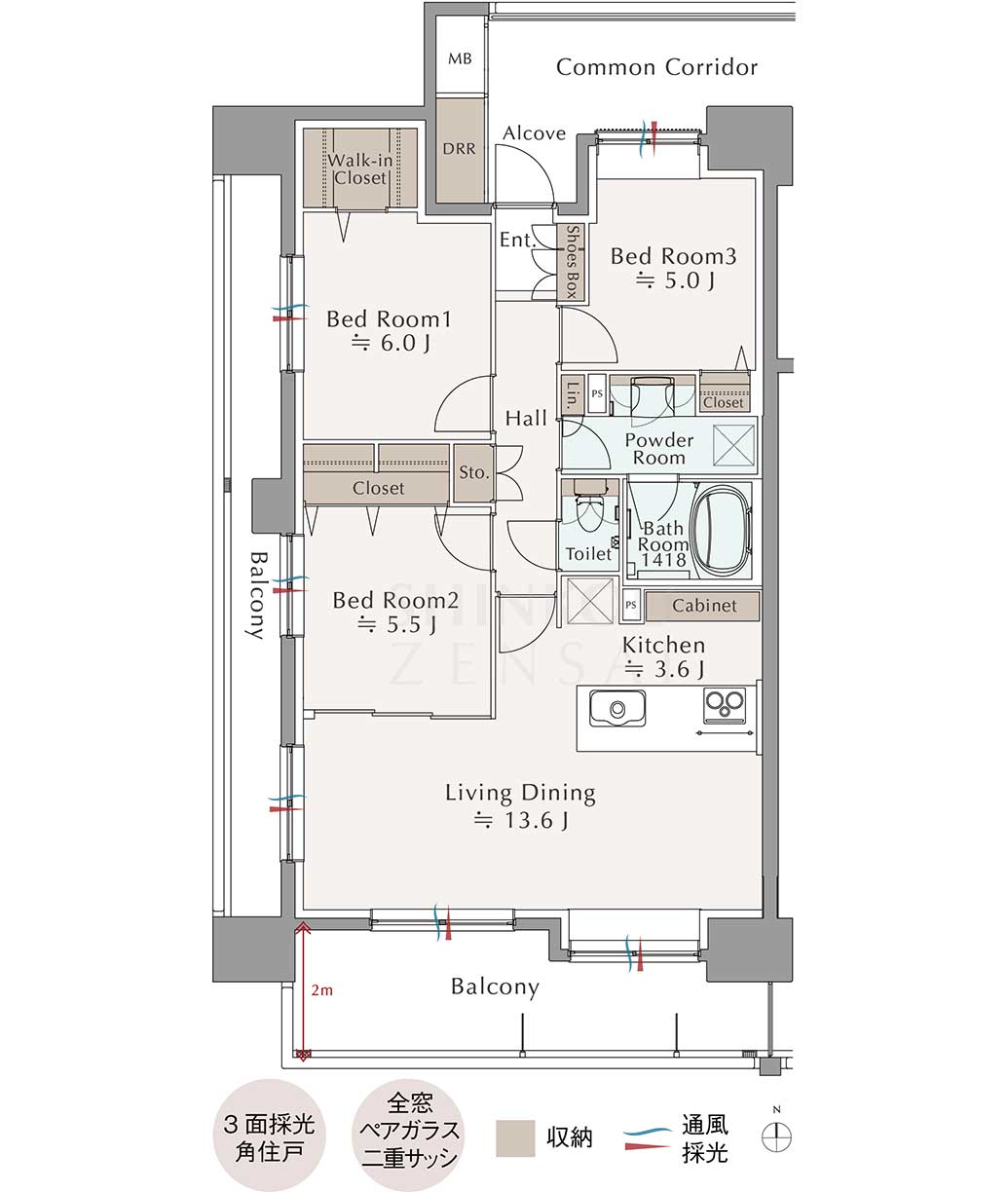 - 2面バルコニー