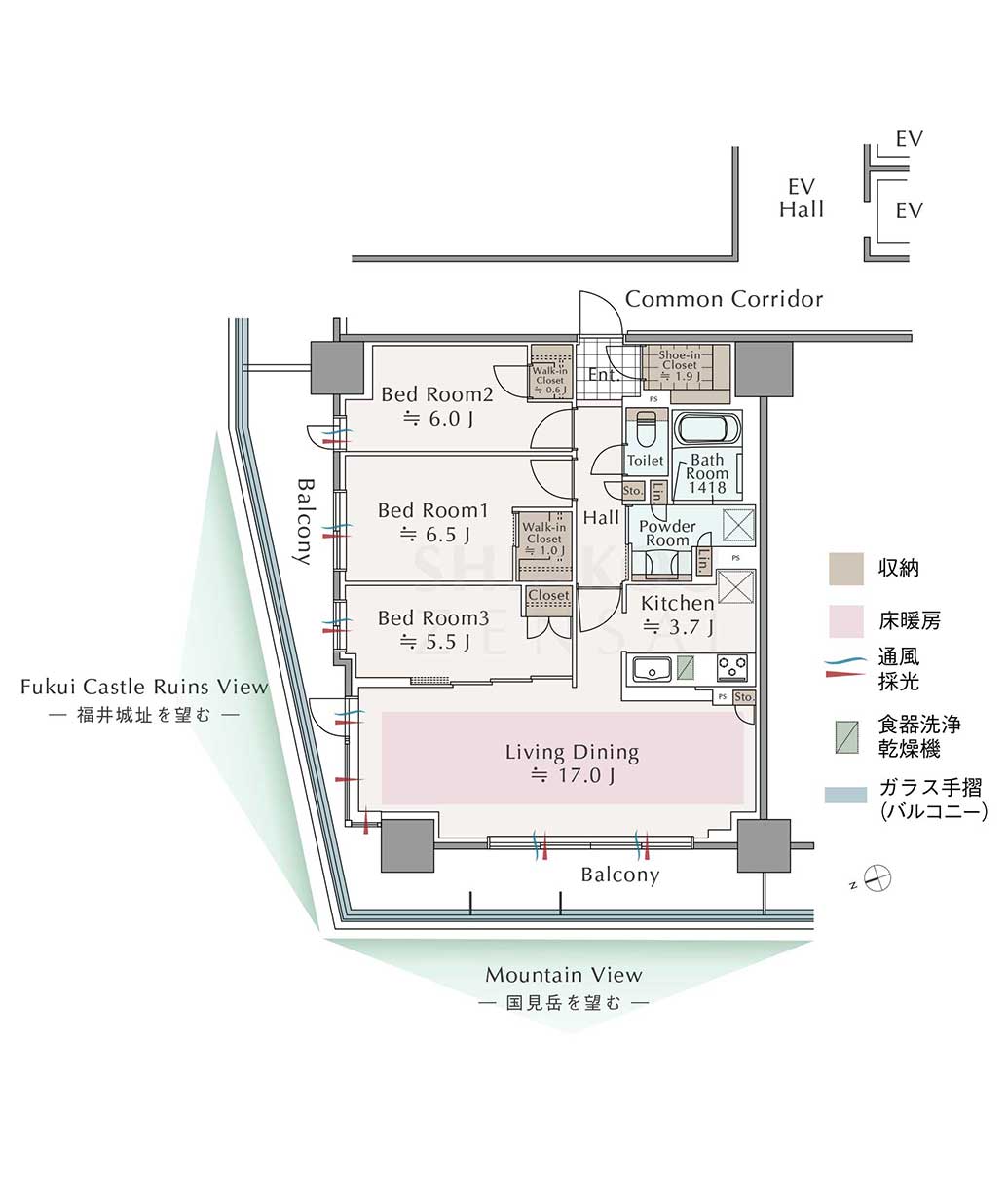 - 14階・二面バルコニーに囲まれた約85平米3LDK