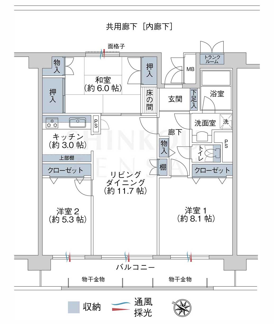 | 間取内訳 | 3LDK(和 6 洋 8.1・5.3 LDK 14.7) |
