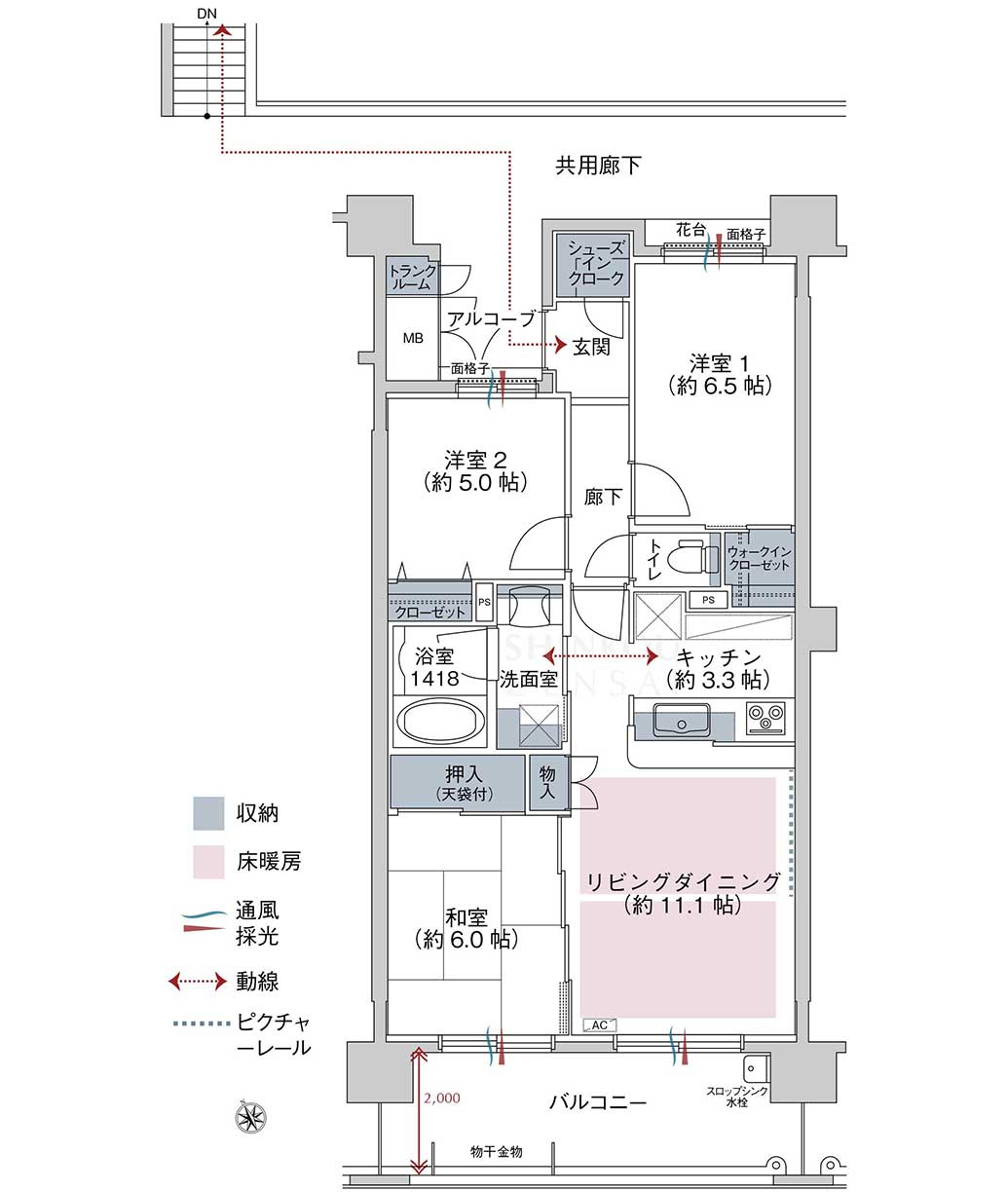 | 間取内訳 | 3LDK(和 6 洋 6.5・5 LDK 14.4) |