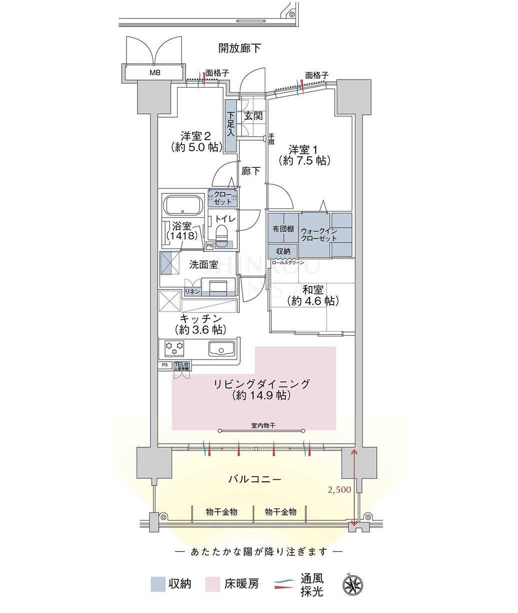 - 4階・南向き・ゆったり約80平米超の3LDK