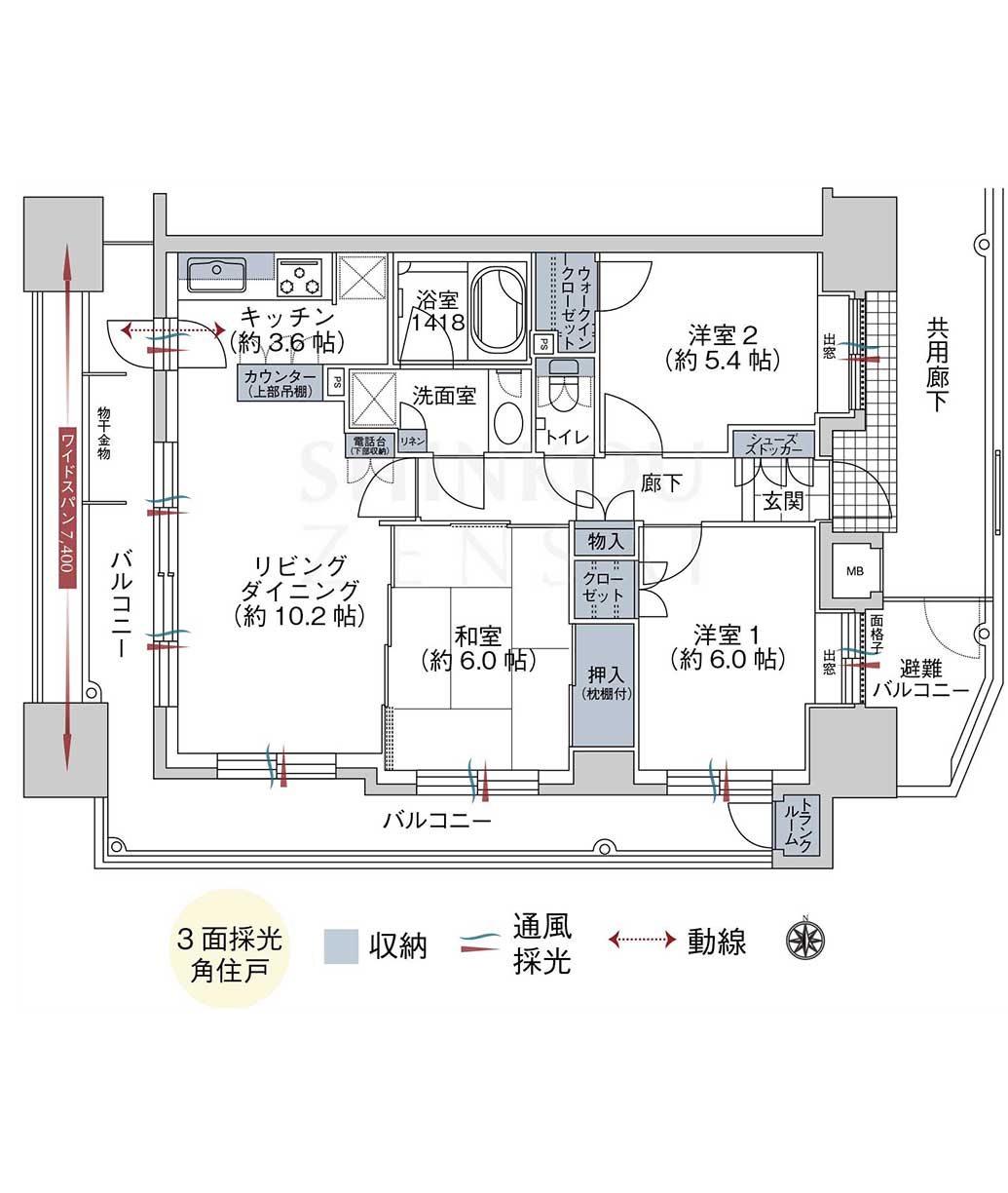 | 間取内訳 | 3LDK|和 6.0 洋 6.0・5.4 LDK 13.8 |