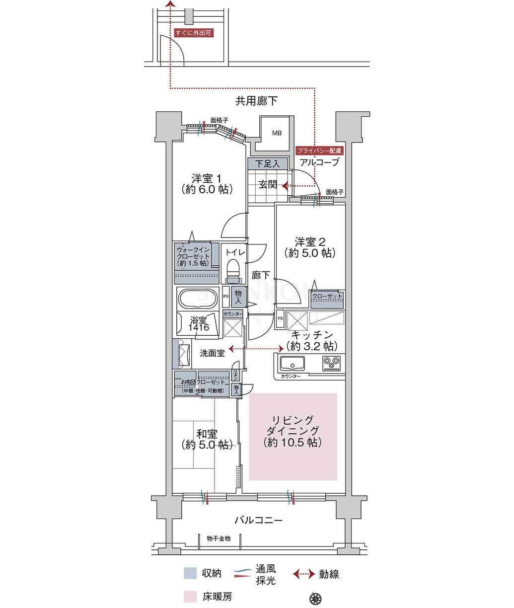 - 2階住戸のため、負担なく階段利用でスムーズな外出が叶います