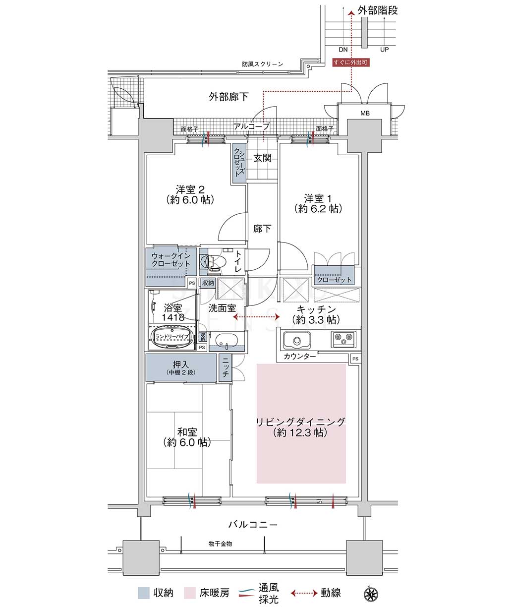 - 南向き3LDK+ウォークインクローゼット