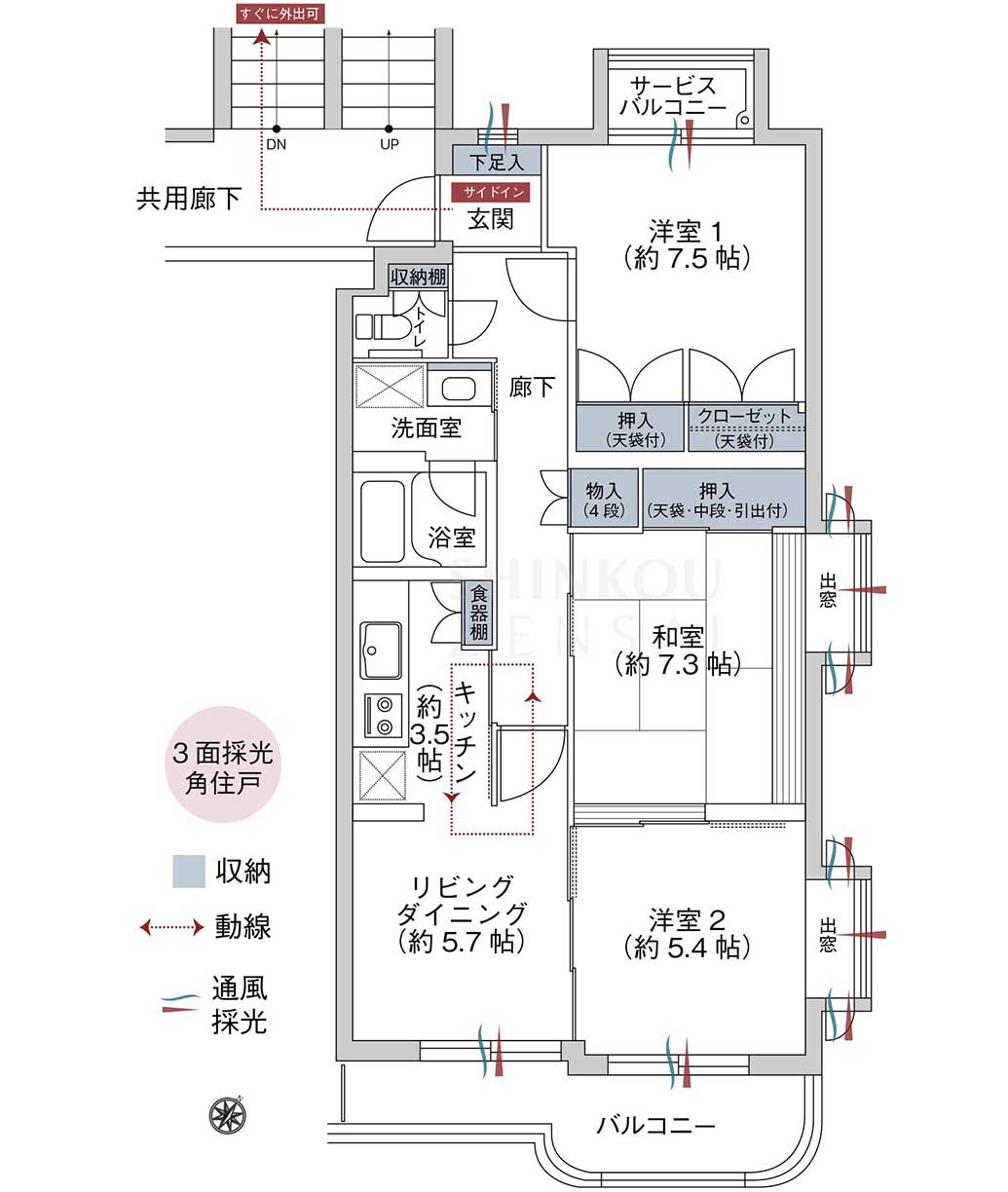 - 2面バルコニー