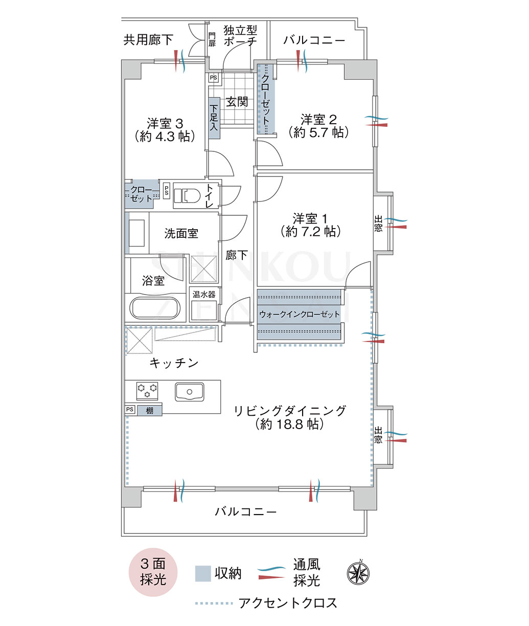 | 間取内訳 | 3LDK(洋 7.2・5.7・4.3 LDK 18.8) |