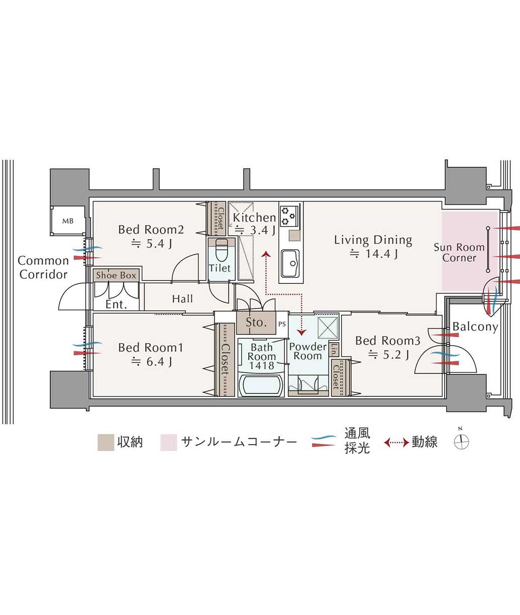 | 間取内訳 | 3LDK(洋 6.4・5.4・5.2 LDK 17.8) |