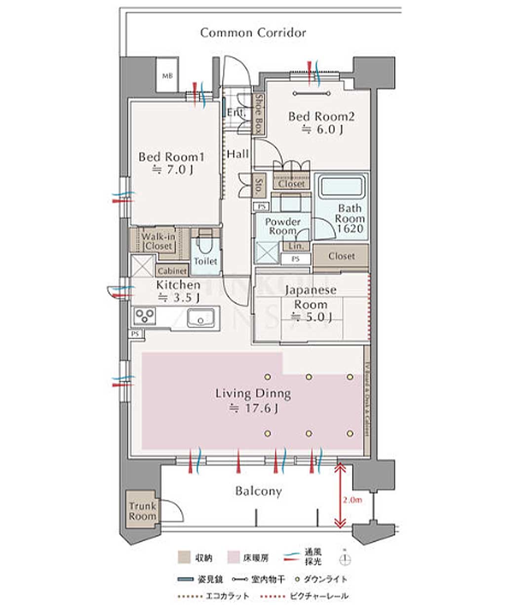 - エコカラットやピクチャーレール、室内物干し、ダウンライトなどオプション多数