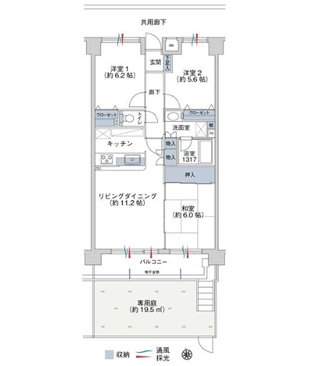 | バルコニー面積 | 9.75㎡ 専用庭19.5m² |