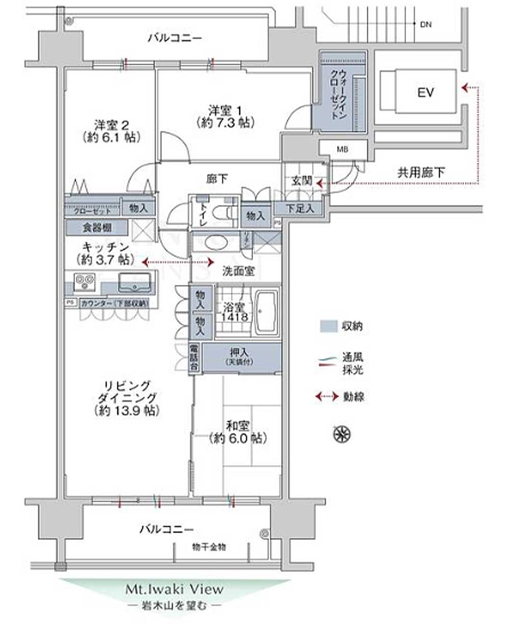 | 間取内訳 | 3LDK(和 6 洋 7.3・6.1 LDK 17.6) |