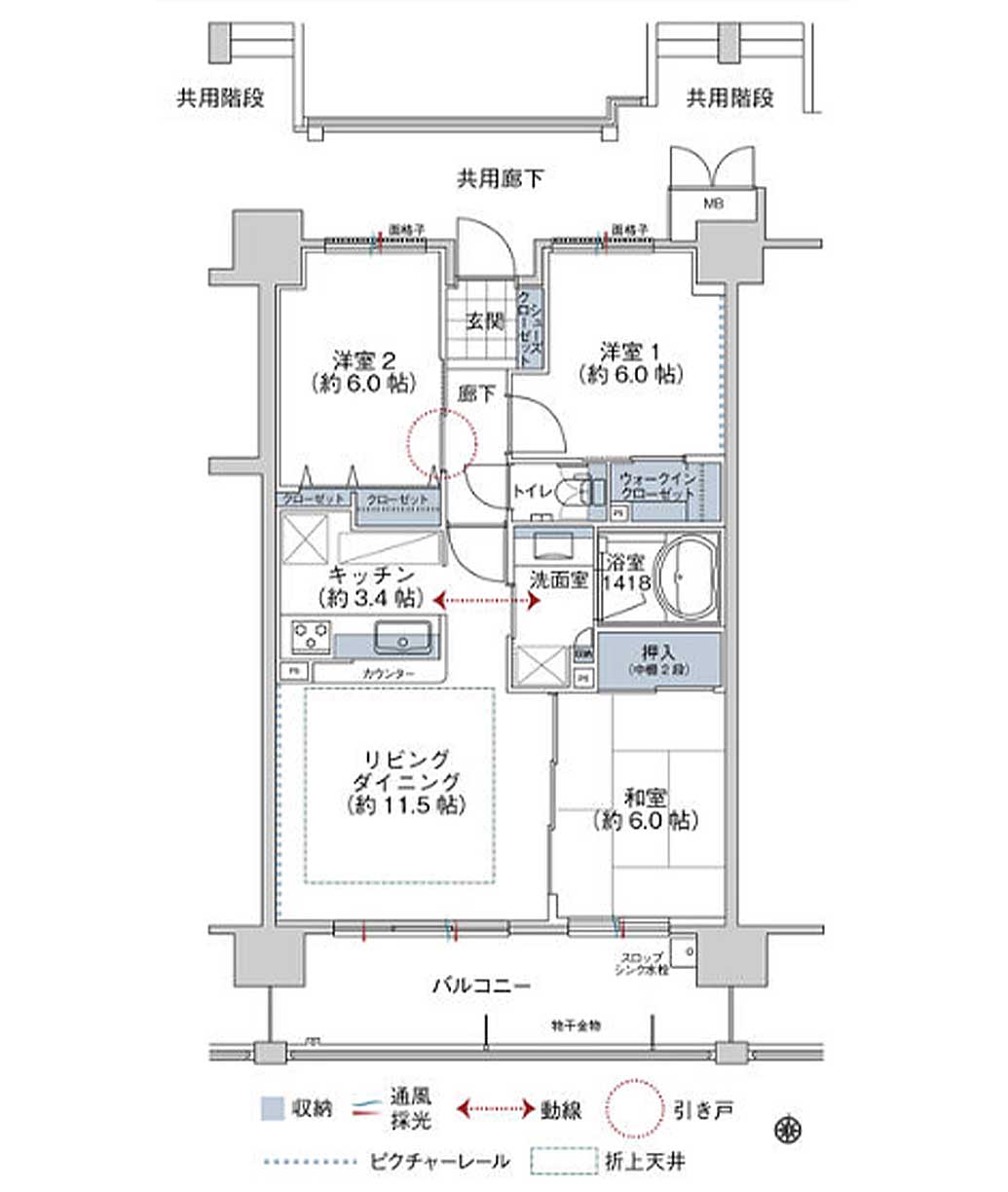 | 間取内訳 | 3LDK(和 6 洋 6・6 LDK 14.9) |
