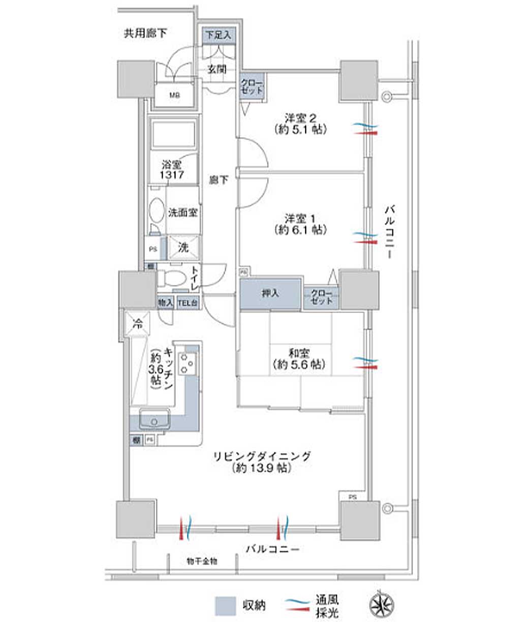 | 間取内訳 | 3LDK(和 5.6 洋 6.1・5.1 LDK 17.5) |